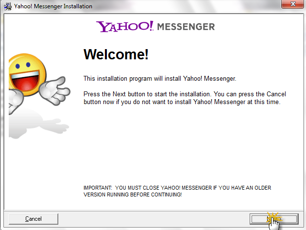 Yahoo! Messenger is a popular advertisement-supported instant messaging client and associated protocol provided by Yahoo!, that allows you to see when friends come online and to send them instant messages.